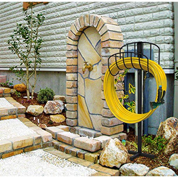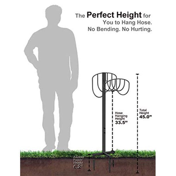 - Free Standing & High Stability – Different from wall mounted hose hanger, hose mobile reel cart or outside hose pot keeper, this wall-mounted Free outdoor hose caddy stake has the total height of 43.5 inches and comes with three stable anchor points, provides the decorative hose pipe organizer stronger support and keeps the standard hose up to 150 ft (hose not included) firmly in place, no messy, no dirty, saves space, makes hose organize.