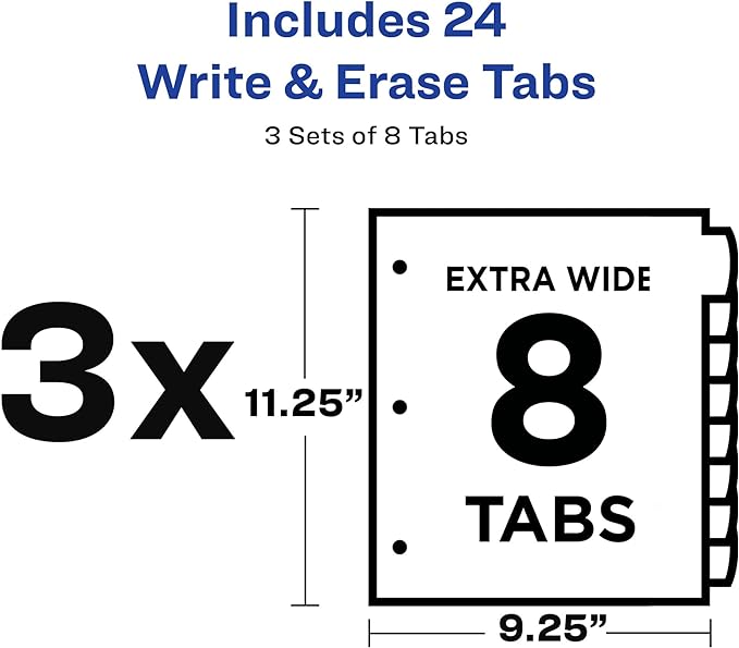 Avery Write & Erase Pocket Plastic Dividers for 3 Ring Binders, 8-Tab Sets, Multicolor, 3 Binder Divider Sets (31701)