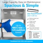 • Dispenses 400 C-Fold or 525 multifold towels (3 1/8-Inch to 3 13/16-Inch) without adjustments or adapters