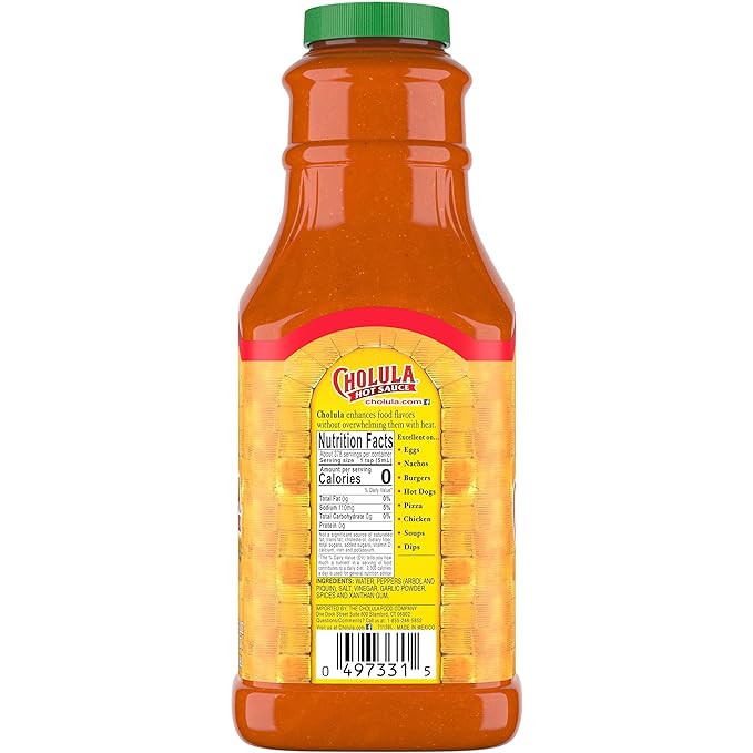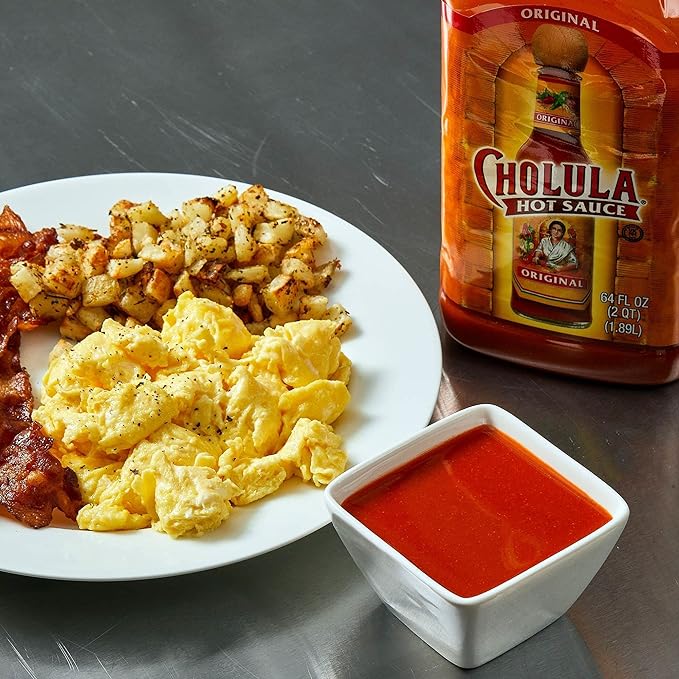 Cholula Original Hot Sauce, 64 fl oz – One 64 Fluid Ounce Bulk Container of Hot Sauce with Mexican Peppers and Signature Spice Blend, Perfect with Tacos, Eggs, Wings, Chicken and More