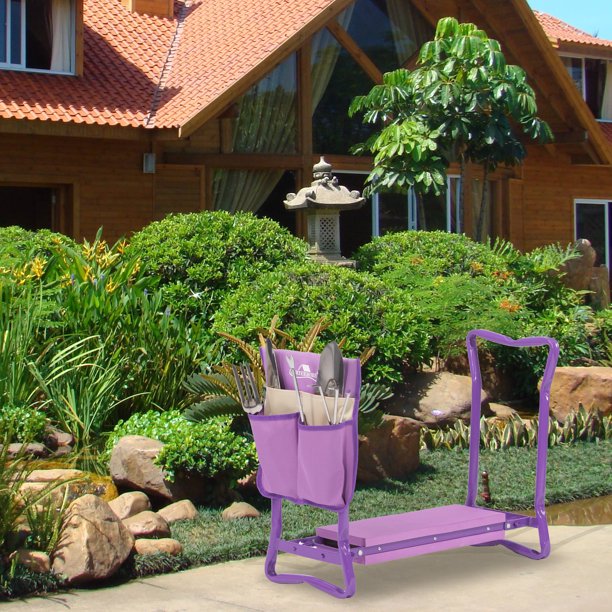 This Karmas Product garden seat and kneeler will assist you with all of your gardening tasks this season. Gardening can be hard on both the back and the knees. Turn it over, and it becomes a comfortable seat to use while doing gardening chores. The folding capability and light weight design allow for easy mobility and storage. This foldable garden stool is constructed of a solid steel frame will provide support for your arms when kneeling down and getting up. Comes with a removable tool pouch with pocket. It is perfect for keeping your tools for your convenience.
