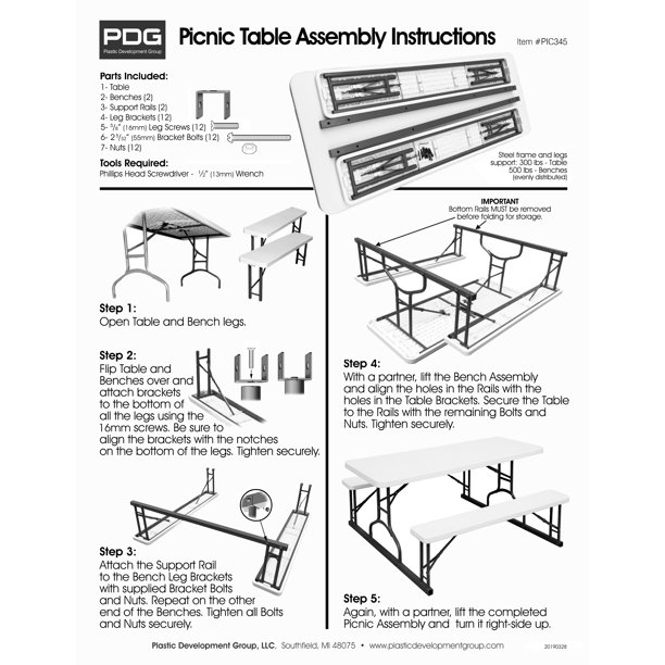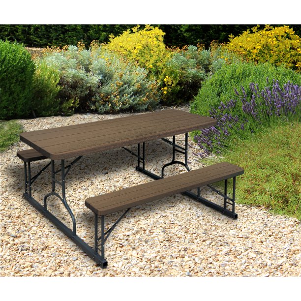 With the Plastic Development Group Picnic Table with Bench, you’ve got the seating you need in any room. Whether you need a card table for games, extra seating for family gatherings, or substitute to your normal kitchen table, this picnic table is just the right size for areas low on space. This picnic table set comes with built-in bench. The table measures 72 inches long, 30 inches wide, and stands 29 inches tall. While the bench measures 72 inches long, 11 inches wide, and stands 17 inches tall. This is just the right size for 4 adults or kids to gather around comfortably. Both the table and bench have vinyl surfaces. The construction on the tabletop keeps the card table safe from scuffs and dents while the bench provides comfort. This picnic table can fold for compact storage.