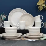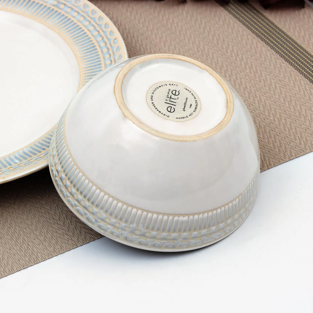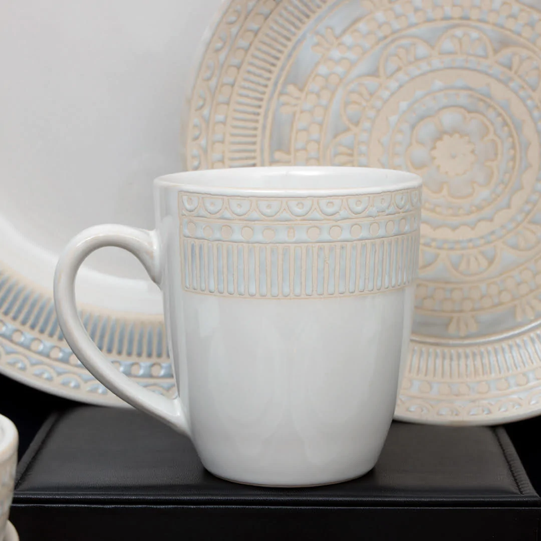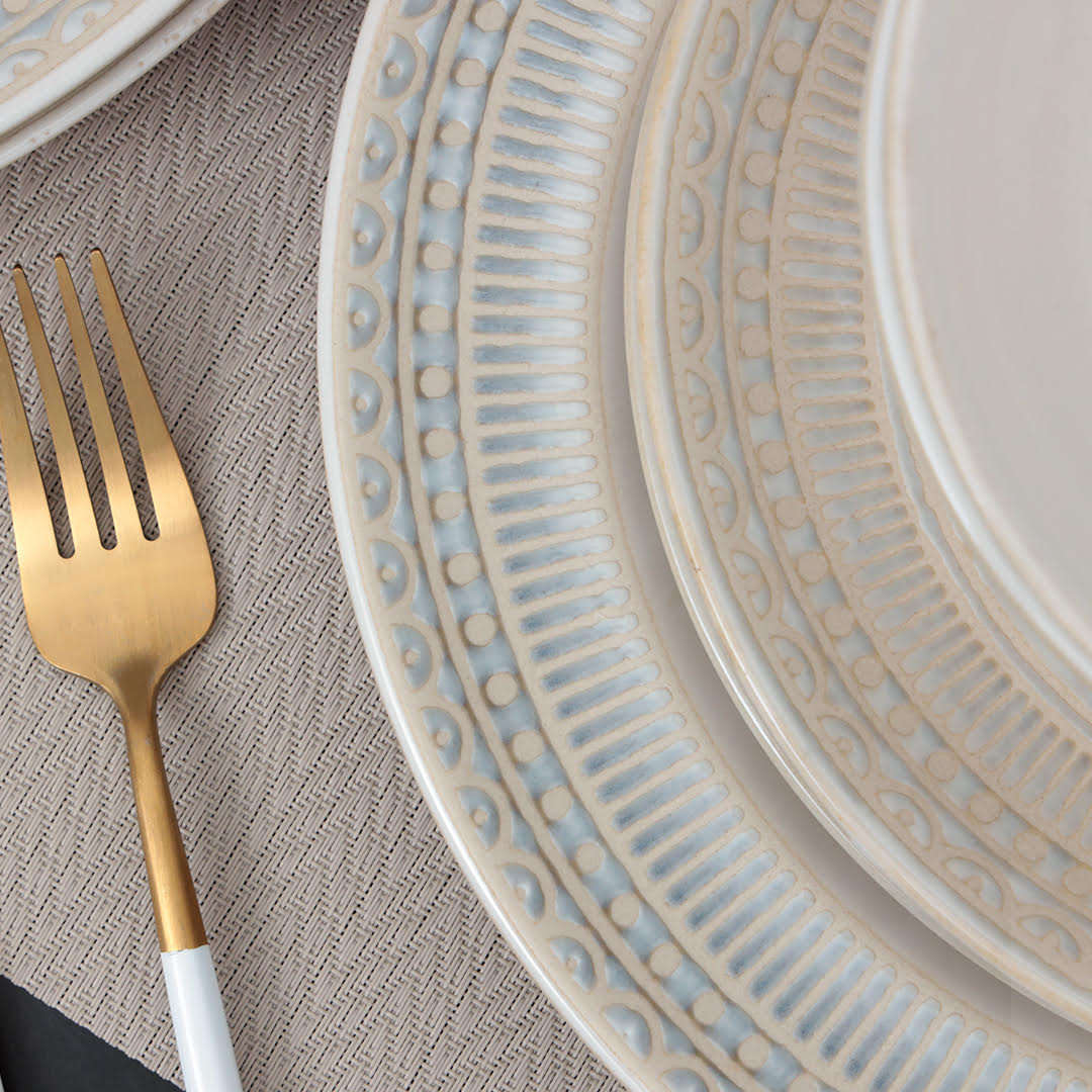 Each dish of this breakfast set is creatively crafted into a unique and contemporary shape, adding a little something more special to mealtime. The embossed pattern will surely bring artesian warmth to your everyday family dining. The color and shape of the set may vary slightly due to the artistic variance and handmade feel. This breakfast serving set is ready to accent your dining table and present homemade cuisines.
