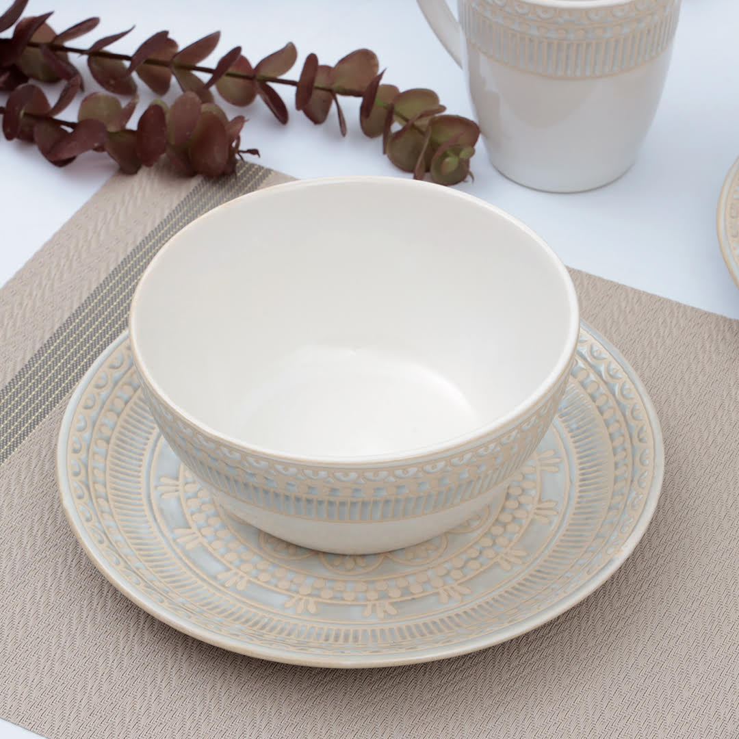 Royal embossed floral breakfast serving set-16 pcs will be a wonderful decorative addition to your kitchen or living room in your home. It will bring brightness and a good mood to your home. Will serve as a wonderful keepsake, gift for you, your family, and friends. They are perfect for serving bread, nuts, jam, yogurt & tea on the dining table.