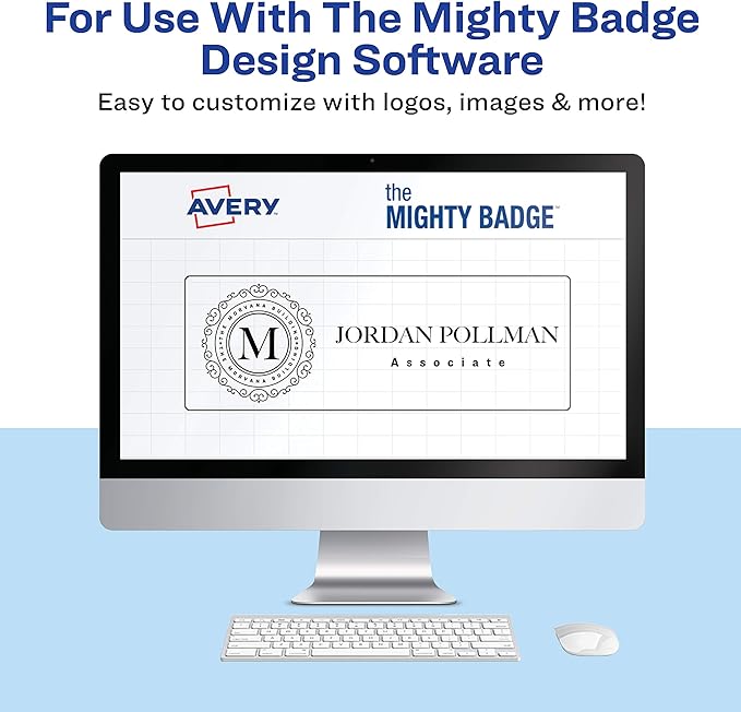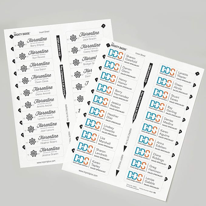 • Customize the peel-off insert sheets with logos, photos, text, barcodes and more with the Mighty Badge software